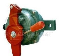 當(dāng)膠帶運(yùn)輸機(jī)現(xiàn)場(chǎng)發(fā)生緊急事故時(shí),可拉動(dòng)系于擺臂上的鋼絲繩,擺臂放旋轉(zhuǎn)而帶動(dòng)機(jī)內(nèi)凸輪并驅(qū)動(dòng)行程開關(guān),發(fā)出停機(jī)信號(hào)。II型機(jī)是在故障排除后,推動(dòng)限位桿方能復(fù)位。